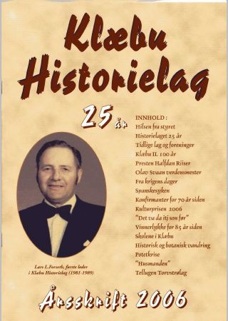 Forside: Lars L. Forseth, første leder i Klæbu Historielag (1981-198
