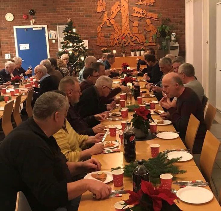 Styret pyntet salen og det ble servert gløgg, kaffe, snitter levert av Prima og en deilig marsipankake.