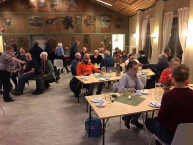 Det var som vanlig sosial kaffepause med te-kake og loddsalg. Historielaget trakk bl.a. en stor fruktkurv gitt av Obs City Syd. Torbjørn ble den heldige vinner.