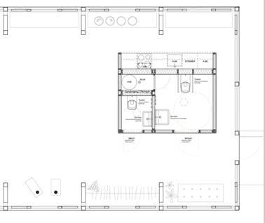 Innredninger i Nybygget på Teigen Fagfolk og arkitekter samlet til planlegging av tekniske installasjoner – strøm, vann, kjøkken, toaletter, garderobe og peis/ovn i Nybygget på Teigen.