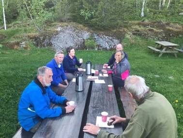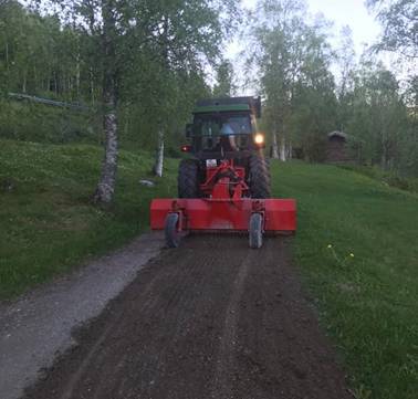 Til slutt kom Roger med traktor og høvlet gårdsveien. Tid til en kafferast ble det selvfølgelig.