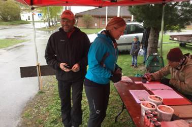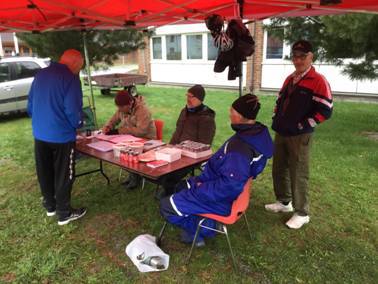 Arrangementskomiteen med Svein Rikstad, Bjørn Rønningen og Nils Ottar Svaan satt godt innpakket, tok imot påmeldinger og hadde nok håpet på at «værgudene» kunne vært mer velvillig innstilt.