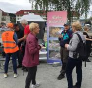 Historielagets stand på Markedsdagen under Kulturuka. Alf Steinar og Ragnar informerte besøkende om lagets aktiviteter og hadde gode tilbud på litteratur og medlemsskap.