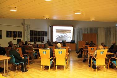 I en pause under middagen, som besto av sodd og kaffe/kaker, viste Alf Steinar en bildeserie fra årets aktiviteter, og Tormod Bekken orienterte om arbeidet med Årsskrift og kalender, og at de allerede nå har begynt å tenke på neste års utgivelser.