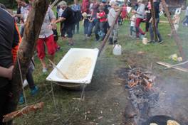 De kom hit allerede lørdag - slo leir, fyrte opp leirbål og overnattet i telt og gapahuker. Utover dagen viste speiderne sine ferdigheter i førstehjelp, knuter, livlinekasting og matlaging. Endel spenning var knyttet til å lage popcorn i et stort badekar – fjorårets forsøk endte med at badekaret tok fyr (!) – denne gang gikk det bra og det ble popcorn til alle.