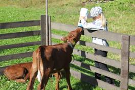 Bondelaget hadde tatt med seg både kalver, lam og høns, og kanskje fikk noen den første nærkontakt med 'dyra på bondegården'.