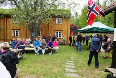 Fra kjøkkenet ble det servert rømmegrøt og spekemat, lapper, kaffe og saft, som du kunne nyte til fengende trekkspillmusikk på tunet.