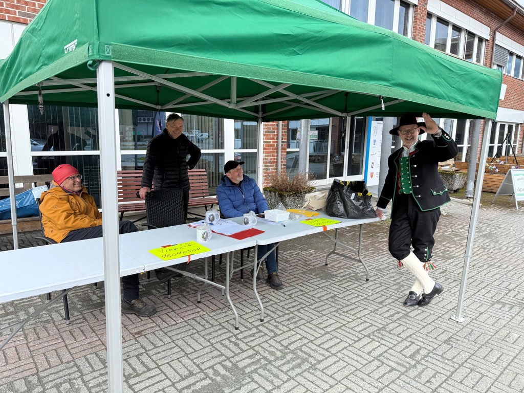 Johan Nordahl Brun Marsjen- 3.mai2025-KlæbuRådhus Johan Nordahl Brun Marsjen – 3. mai 2025Kl. 12.00-15-00Klæbu RådhusÅrets turmarsj med Klæbu IL og Klæbu Historielag som arrangør ble arr. i noe kaldt vær og litt regn.Årets startbu med funksjonærer gjør klart til deltagerne.