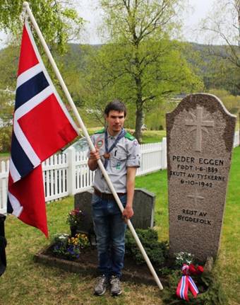 og på minnestenen etter Peder Eggen som ble henrettet som gissel under krigen. Speidere fra Klæbu markerte minnestedene med flagg.