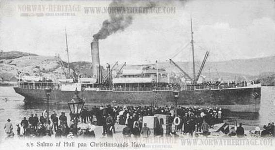 D/S ”Salmo” gikk i rute Trondheim – Hull i årene 1900-12.