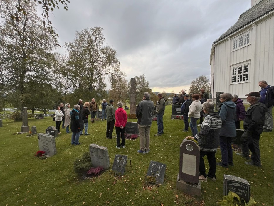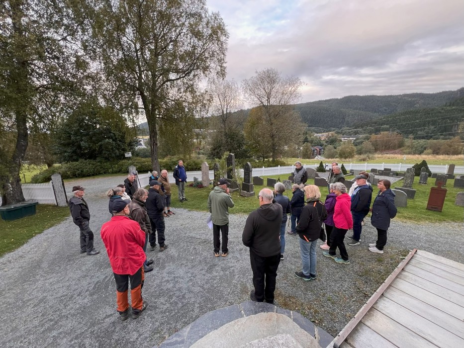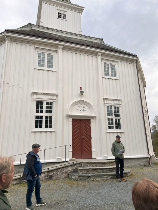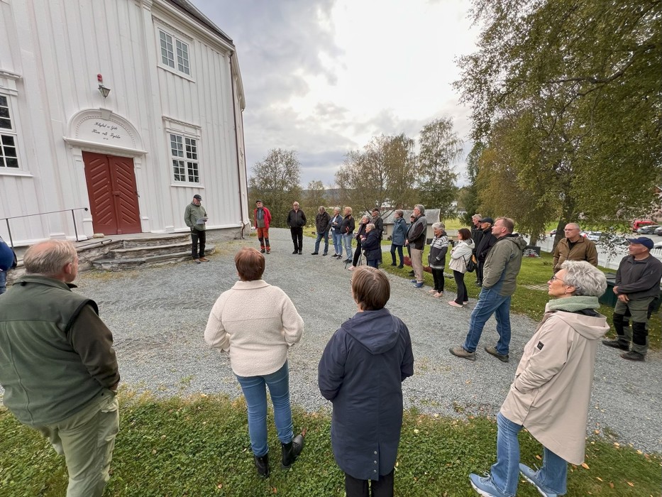 I ett lett overskyet vær fikk om lag 25 frammøtte en fin orientering om kirka og prestegården.