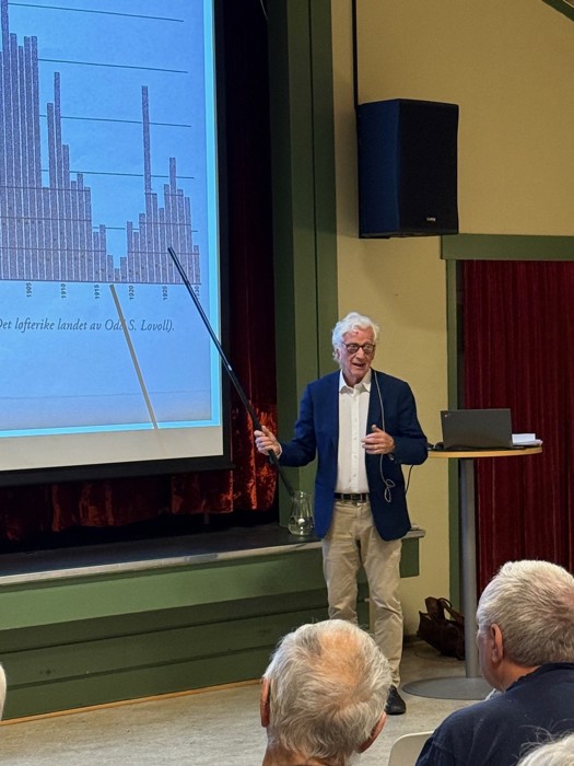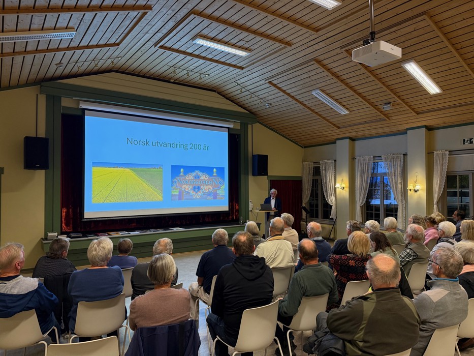Foredraget var ved Rasmus Sunde som fortalte om utvandringa til Amerika.